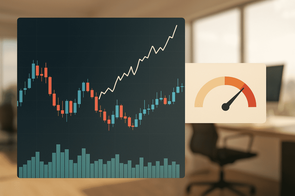 The Gauge might incorporate ingredients like time-of-day positioning from the Edge Map, volatility regime classification from the Volatility Windows Detector, distance from key intraday and higher time frame levels, recent momentum, and perhaps measures of intraday sentiment such as breadth or volume thrust. Each factor contributes positively or negatively to an internal score. When enough conditions align in favour of a reversal, the Gauge reading climbs, suggesting that fading the current direction may have a favourable probability profile. When those conditions are absent, the Gauge reading remains low, nudging you to respect the prevailing trend.